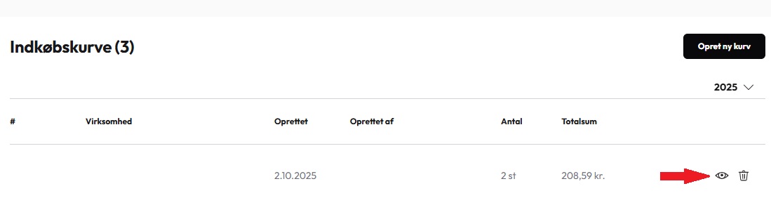 Klik på øjet ved siden af den indkøbskurv, som du ønsker at indlæse.