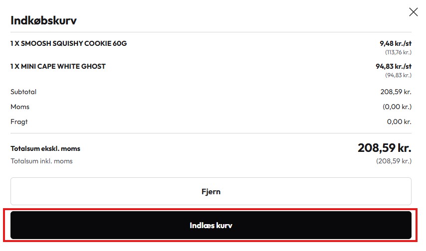 Klik derefter på ‘Indlæs kurv’ for at tilføje produkterne til din aktive indkøbskurv. Bemærk venligst, at hvis du allerede har produkter i din aktive kurv, vil de blive erstattet med dem, du indlæser.