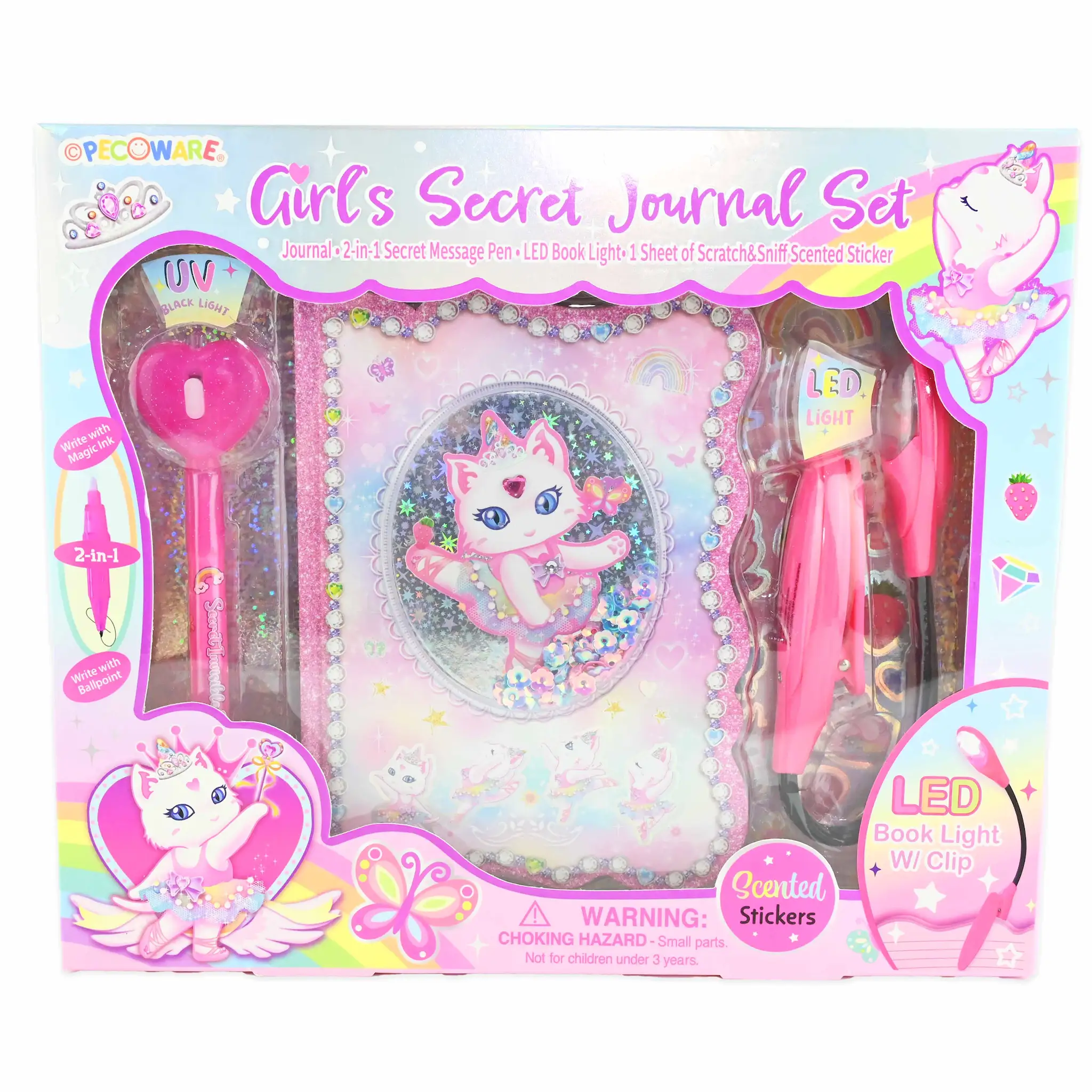 Diary set with secret message 2-in-1 pen, book led light and scented stickers