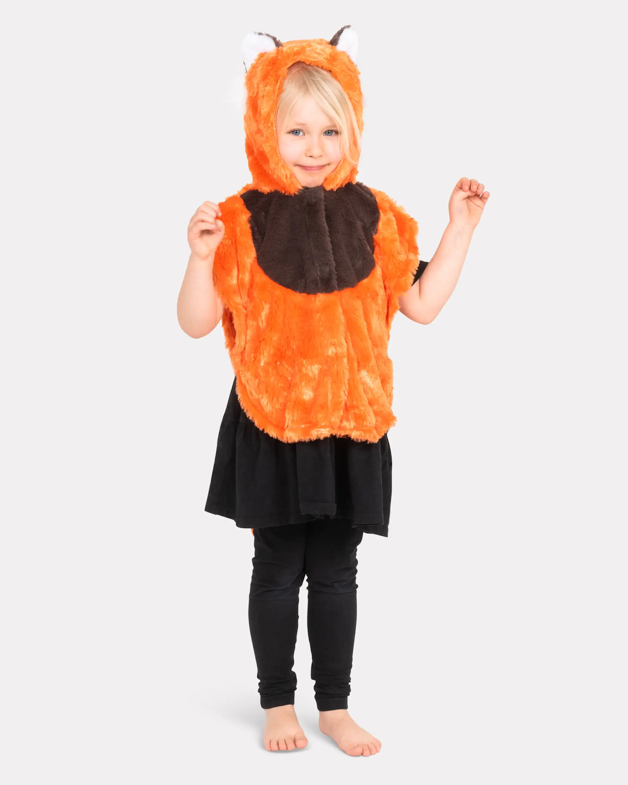 Mini Cape Red Panda: Cape with hood and Burdock closure. Fake fur quality.