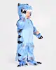 Light blue T-Rex jumpsuit with hood. Padded tail, claws and hood. Zipper in the front.