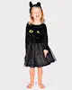Black cat dress with tutu skirt. Tail in the back, and ears on the chest.