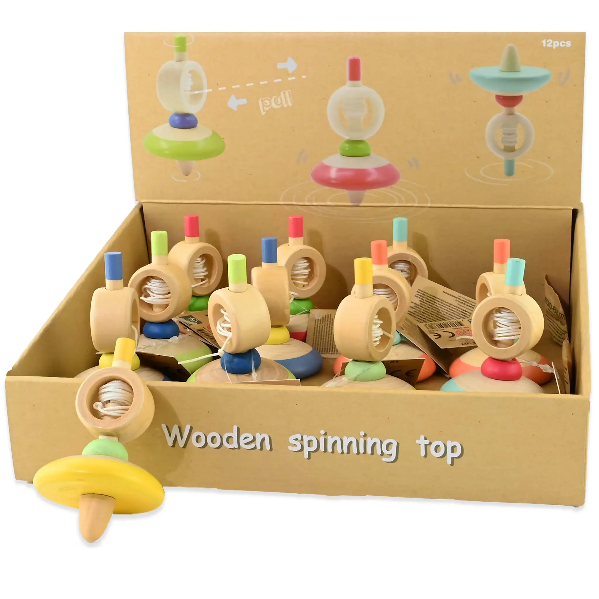 SPINNING TOP w STRING WOODEN